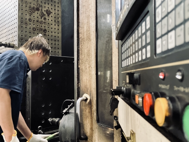 - 「マシニングセンタ」という金属を加工するための自動工作機械を操作して、鉄板を加工します(穴あけ・削り・ネジ山づくりなど)★一人一台の機械を用意★手作業するのではなく、機械の動きをセッティングする仕事です<大まかな工程>●図面を確認↓●段取り/「ここに穴を開けるなら、ここに資材を乗せよう」などイメージしながら。↓資材である鉄板を機械に設置/フォークリフトやクレーンを使用。重いものを手で運ぶことはありません。↓●図面をもとに機械をセッティング/「鉄板の中心から500mmの位置に穴を開ける」「その穴にネジ山をつくる」など、一連の動作をプログラムとしてセットします。↓●テスト加工/セッティングした通りに動くかチェック↓●自動加工スタート/一度セットすれば、あとは機械が自動で動きます。同じものを複数つくる時は、そのまま放置でOK!<入社後は…>先輩について、機械の操作や工程を学んでいきます。じっくり時間をかけてお伝えしていくので安心してください。その後、簡単な加工から少しずつお任せしていき、1年くらいで独り立ちの予定です。初めて自分で「できた…!」という喜び、一緒に感じたいと思っています。★奥深い仕事例えば「こうセットしたらドリルが1秒間に何回転する」「こうセットしたらドリルが前に進む速さはこうなる」というような、「こうセットすればこう動く」を組み合わせていくのが基本。慣れれば操作自体は決して難しくありません。でも、「ここに穴を開けるなら、鉄板はここに設置しよう」と段取りを考えたり、仕上がりをイメージしながら工夫をしていくのが面白くて、飽きない仕事です。★未経験でも始めやすい過去のプログラムをもとに「中心から何mm」の「何mm」の部分の数値だけを変えるなど、基本的に難しいセッティングをするわけではないので、未経験からでも全く問題なく始められます。★貴重なスキルが身につく慣れてくると、例えば機械が穴あけ加工をしている音を聞いて「ちょっと負荷をかけすぎかも。少し回転数を抑えよう」というような感覚が自然と身についていきます。マシニングセンタという先端の機械を扱う「プロ」になれる仕事。自分の価値を大きく上げることもできる環境です。