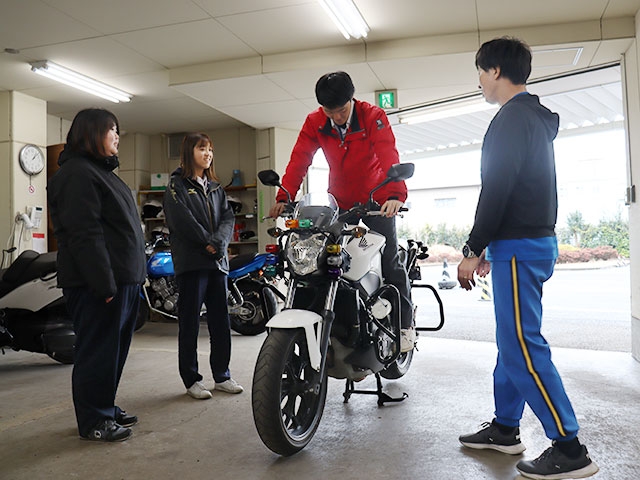 バイク教習についてみんなで勉強中!異業種・異職種からスタートした先輩が沢山活躍しています。