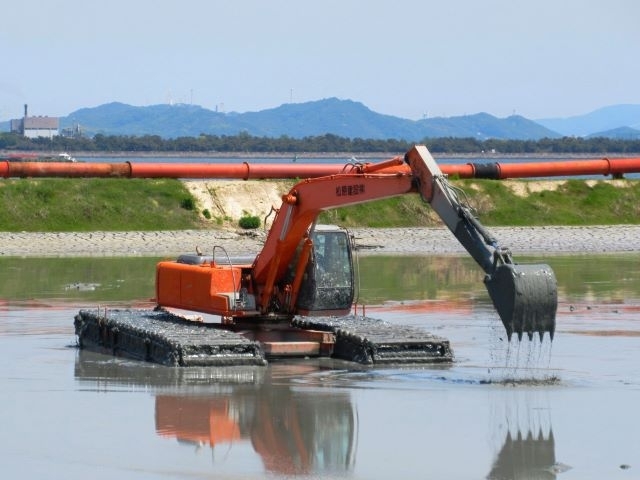 水上で作業をする、泥上機。あらゆる災害の場面でも、大活躍します。