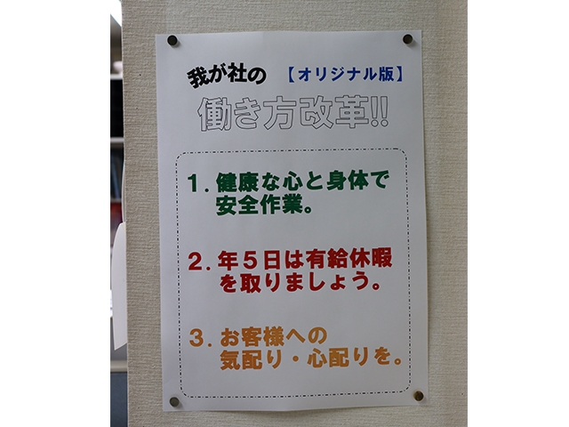 休みを気軽に取れるようにする。自分の時間や、家族との時間も大切にしてほしいという社長の願いがこめられています。