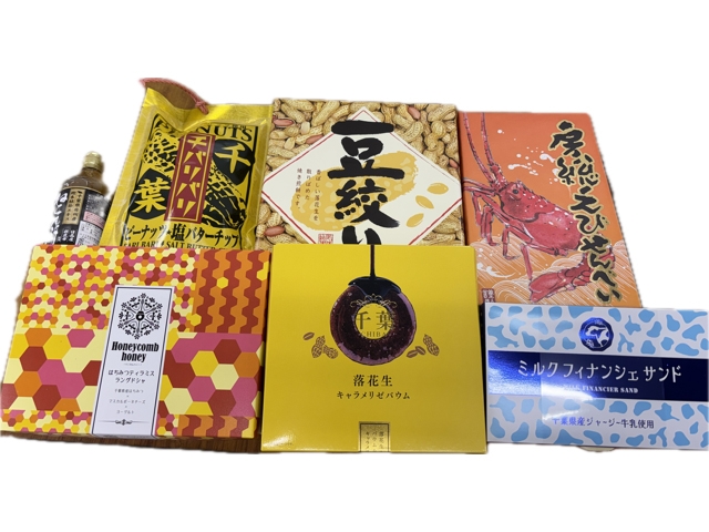 自社製品の一部です。運営をしている「房総・村の駅」などでは、個性豊かなお土産などを販売しています。
