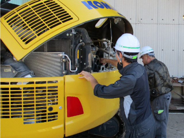 点検風景◆大小問わず、さまざまな建設機械を扱います。