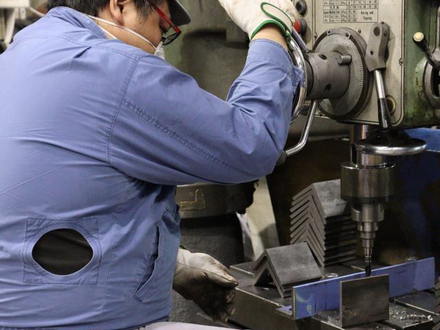 機械を使った穴あけ加工の様子です。黙々とモノづくりに向き合えます。