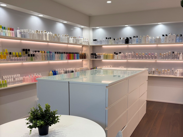 社屋には化粧品容器のショールームもあり、全国からお客様が訪れます。