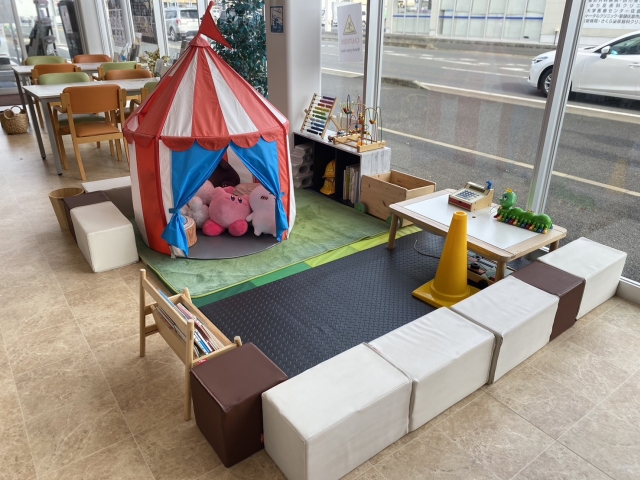 お子様連れのお客様が安心して相談できる様、キッズスペースを設けています。