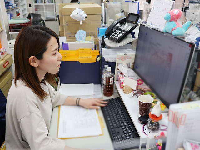 一緒に働く先輩はコミュニケーション盛んに仕事を進め、事務所を支える頼もしい先輩です