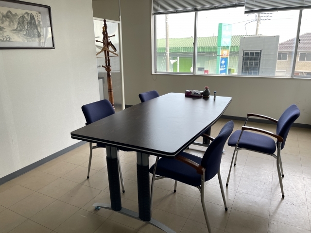 光のよく入る応接室。事務所スペースを含め、広々とした社内です。