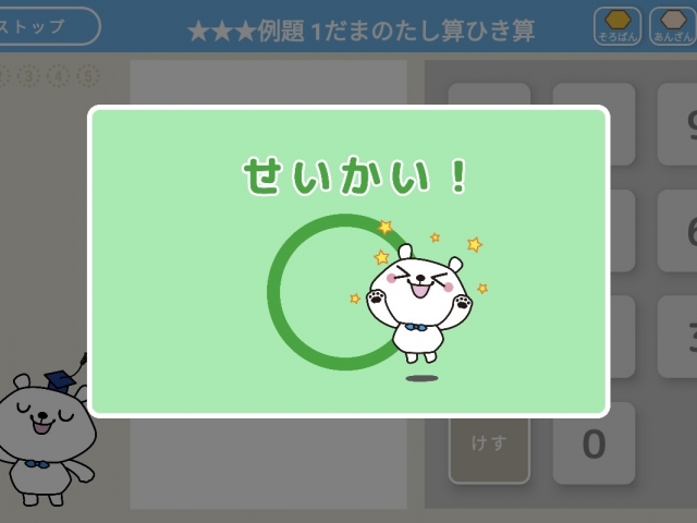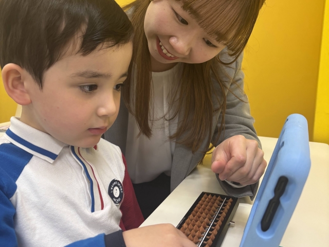 学習は、そろばんとタブレット端末の教材を使って行います。