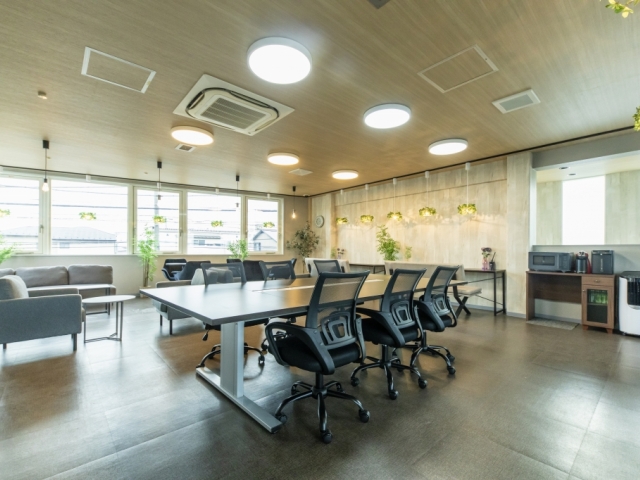 できたばかりのリフレッシュルーム、お昼休みなど快適に休息できる空間です