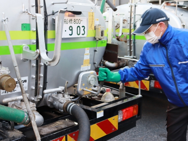 バキュームカー(3t~4t)を運転して、浄化槽の清掃・運搬のお仕事をお任せします。