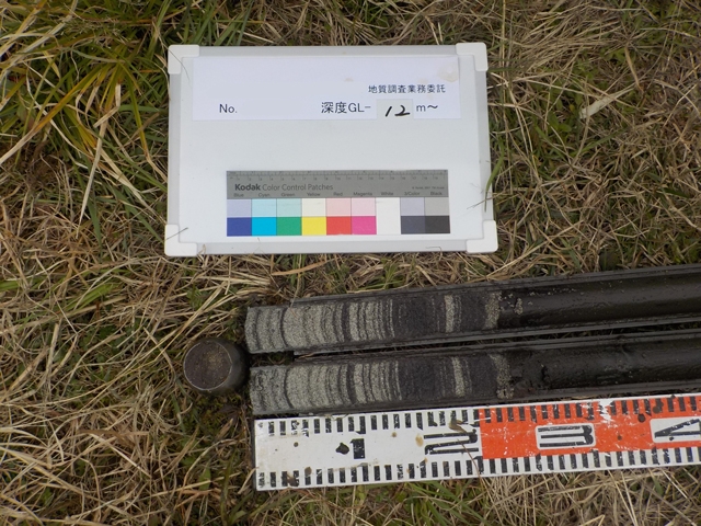 採取した、地層のサンプリングです。深さによって地質が変わっていく様子が見られます。