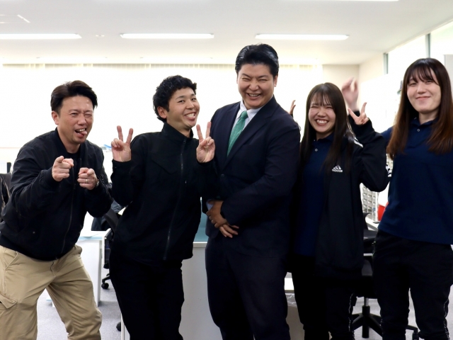 向かって左端が社長の布留川です。みんな、あなたにお会いできるのを楽しみにしています!