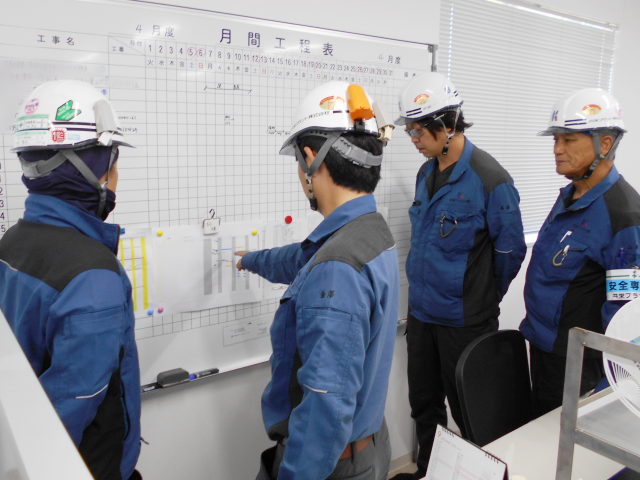 工程確認の様子。フォローし合えるよう、横の連携もしっかりしています。
