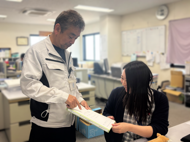 書類作成などは工務事務スタッフがしっかりとサポート。頼もしい存在です。