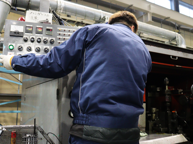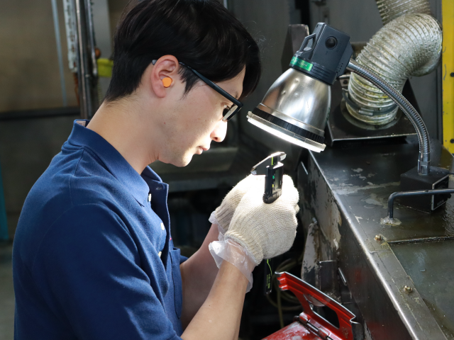 自動車部品として使われる「T型溶接ナット」の製造をお任せします。 製造工程によって、複数の部門に分かれており、今回の募集は第一工程である「冷間圧造」への配属となります。 <具体的には> コイル状の金属の材料を、ナットの原型に形づくる工程です。 ・機械への材料(コイル状の金属)のセット ナットを成形する専用機械(ヘッダー)に取り付けます。材料がまっすぐ送り込まれるよう、向きや位置を確認しながら準備をします。 ・金型の取り付け 製品が変わるタイミングで、機械に取り付ける金型を交換します。 ・試し打ち、寸法確認 まずは成形した原型を測定し、規定の寸法に収まっているかを確認します。測定結果をもとに金型の高さや位置を調整したり、ライナー(薄い調整板)を使い、わずかな差をコントロールします。 ・量産中の巡回、確認 機械が稼働し始めたら、材料の流れや製品の状態、機械音の変化などを確認しながら工場を巡回します。 <入社後は…> 工具の名前や機械の仕組み、寸法の見方など、基本から一つずつ覚えていきます。少なくとも3ヶ月間は先輩と一緒に機械オペレーションを行い、仕事の流れをしっかりと覚えていきます。 機械の周りには同じ工程の仲間がいるので、仕事に慣れた後でも何かあればすぐに聞ける環境です。1人に責任がかかる業務はなく、会社全体で協力して良いモノをつくっていきます。 ◆T型溶接ナットとは…◆ 自動車の骨格などをつくるうえで、部材を結合したり、固定したりするために使われる、穴のあいた金属のパーツです。当社製品は、高い強度で結合するために溶接で結合するタイプのナットであり、溶接面が広い「T」のような形になっています。 |