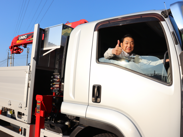 このようなユニック車での配送となります。積み下ろしなど、先輩社員がしっかりとサポートします。