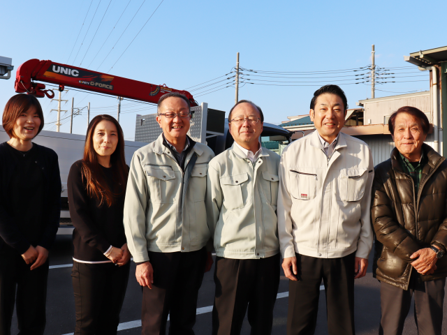 全員ではありませんが、勤務地となる長沼営業所のメンバーです。向かって左から3番目は社長の石崎です。
