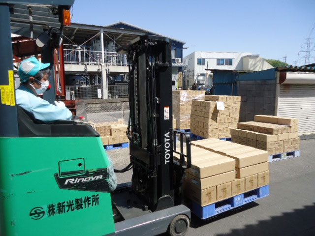資材管理業務の様子●身体も動かしつつ、リフレッシュ。いいバランスです!