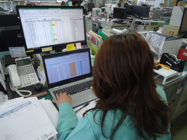 生産管理業務の様子●事務所メインで、データを見ながら進めることも!