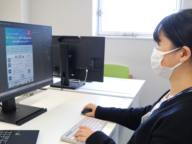 チラシ制作風景。「Adobe Illustrator」を使用することが多いです。