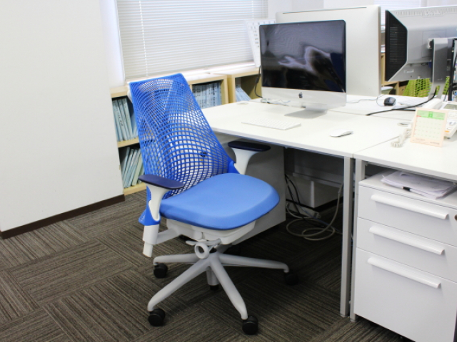 椅子はハーマンミラーのセイルチェア。快適に仕事ができます。