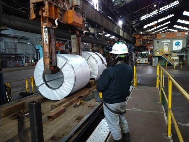・天井クレーンを使用した鋼材(コイル・平板)の入出庫及び梱包作業
