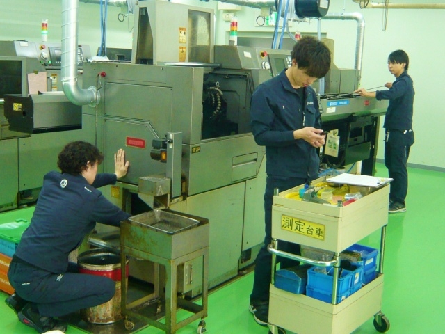 NC自動盤という機械を操作し、当社製品「セルファスナーシリーズ」の製造を行います。 いずれも6〜7ミリと小さく、場合によっては顕微鏡を覗きながら行う工程もあります。 ★小さい部品を扱っているため、重いものを運ぶような肉体労働はありません。仮に運ぶとなっても荷台を使用します。 <入社後の流れ…> 入社後はまずは製品のことを覚えながら、測定器を使って寸法を測ったり、材料運びや機械から出てくるクズ掃除など簡単な作業を行ってもらいます。それと並行して、座学で知識をインプット(理屈を教わる)→先輩が横について機械をいじってみる(実際に動かす)の繰り返し! コツコツ覚えていくと、7ヶ月を目安に簡単なプログラミングができるようになります! <近くで作業をしている先輩がいる。それだけでも安心です!> 未経験でも全く問題ありませんので、業務でわからないことがあったら自ら積極的に聞いてもらえると嬉しいです!わからないことはわからないとハッキリ言える方・明るく素直な対応ができる方、ぜひ一緒に働きませんか? |