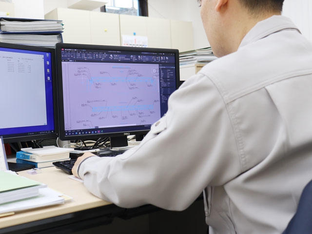 CADを使用して設計図を作成します。黙々と集中する作業が好きな方は向いています!