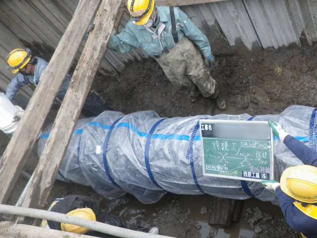 配水管の修繕工事の風景。仲間で協力しながら、成し遂げました。