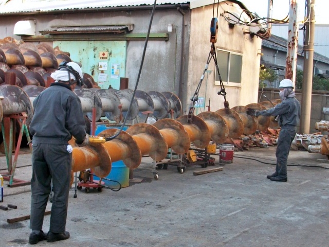 高層ビルや橋などを建設する際に基礎工事で使われる鉄製品(スクリュー、拡大ビット)の製造・メンテナンスをお任せします。 新品の製品をつくることもあれば、一度現場で使用されて当社に戻ってきた製品のメンテナンスをすることもあります。 <具体的には…> ◆部品の溶接加工 … 本体(スクリュー)に鉄の羽根(拡大ビット)を溶接して取り付けたり、消耗している部品の交換、補修などを行います。 ◆洗浄、メンテナンス作業 …役目を終えて戻ってきた製品の汚れを高圧洗浄で落とします。 ◆機械加工(切削加工、切断加工) …専用の機械を使用して、加工を行います。 ◆クレーンや玉掛けでの移動 …製品は大きいため、クレーン・玉掛けを使用して移動します。 一度使われた製品の消耗の仕方や破損箇所は、毎回異なります。製品を確認しながら「さて、どうやって直そうか」と考えて修復していきます。「次はこのやり方を試してみよう」と新しい発見が多く、何年やっても飽きのこない仕事です。 <入社後は> まずは製品の洗浄など、特別スキルを必要としない作業からチャレンジしていきましょう。費用は会社が全額支援し、クレーン・玉掛けをはじめとする資格を取得できます。 そのうえで、溶接、機械加工などを少しずつ覚えていきます。先輩社員がマンツーマンで丁寧にお教えいたします。じっくり時間をかけながら、モノづくりの仕事の面白さを知っていただけたらと思っています。 |