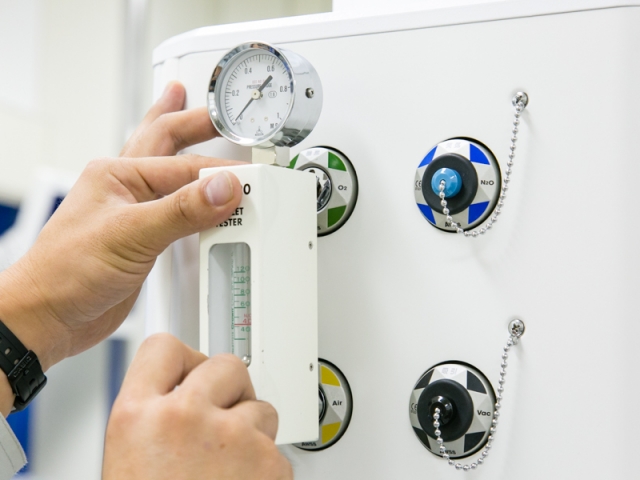 点検風景◆医療ガス設備の動作点検中!問題なく動いているかチェックしています