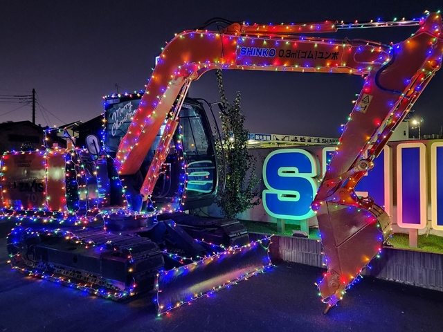 【期間限定・重機イルミネーションも実施中】各拠点の敷地内には沢山の建機が建ち並んでいます。実際に目にすると、壮観な眺めですよ。
