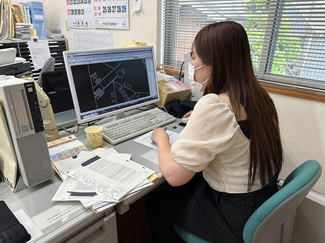 明るくてきれいな社内。事務スタッフが書類作成など様々な面でサポートをしてくれています。