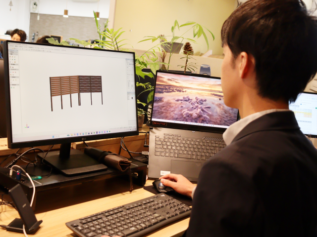 建物そのものではなく、生活をより良くする“プラスアルファ”の価値を提案するお仕事です。お客様のご要望に沿って、目隠しフェンス、防犯・プライバシー対策、雑草対策、人工芝、テラス、ドッグランなど多様なニーズに対応します。自分の提案が形として残り、お客様の暮らしを豊かにできるところがやりがいです。 積極的にコンテストへ出場し、多くの受賞実績があります。あなたの携わったお庭もコンテストに出場して受賞を狙うことも可能です!受賞実績を積みたい方、デザインの幅を広げたい方にはぴったりの職場です。 また、建築・造園関連の専門知識を学び、スキルアップもしていける環境です。頑張りが目に見える形になるので、モチベーション高く働き続けることができますよ! |