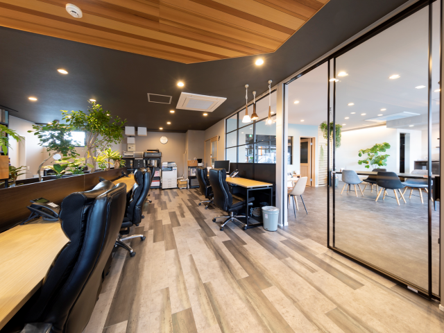 ランド・ガーデン店舗の風景。商談・デスクワークともに快適な空間で仕事ができます。