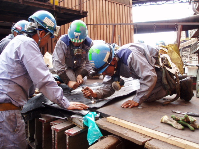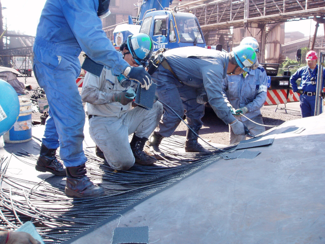 JFEスチール構内で、原料などモノを運搬するために使われるコンベヤベルト。 そのゴム製のベルトを手作業で加工していくお仕事です。 <具体的には> ◎コンベヤベルトの加工・取替・補修 ◎定期点検・メンテナンス ◎稼働確認 など <加工の流れ> ●カッターナイフでゴムベルトの両端をカットする(長いもので3km!) ↓ ●カットした端同士をくっつけて、輪っか状にする(特殊なのりを使用) ↓ ●圧力と熱を専用の機械で加えて、焼いてくっつける(社名にもある「加硫(かりゅう)」と呼ばれます) ↓ ●表面を綺麗にして作業完了! その他、穴あけ加工や傷の補修(ゴムの絆創膏のようなものをくっつける)などがあります。 使用するカッターナイフは、家庭にもある一般的なもの。もちろん、誰もがはじめはすんなりゴムを切れるわけではありません。何度も練習を重ねて、どんどん上達していきます。 <入社後は> 安全教育(自社・JFE)からスタートします。座学でしっかりと基本を学んでから、現場での作業に入っていきます。 現場では、先輩社員について、1つ1つの道具を覚えるところから。先輩のアシスタントをしながら、作業の中身を知っていき、少しずつできることを増やしていきます。 ●必ずチームでの作業。入社から何年たっても、わからないことがあればいつでも周りに相談できます。 ●クレーン・玉掛け・有機溶剤作業主任者など、会社支援で資格取得ができます。 |