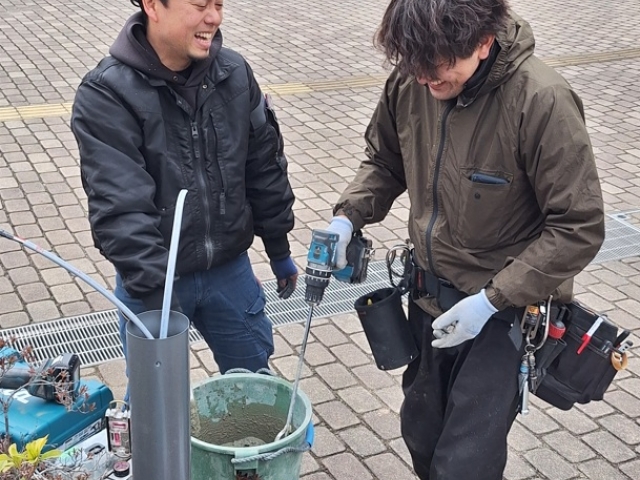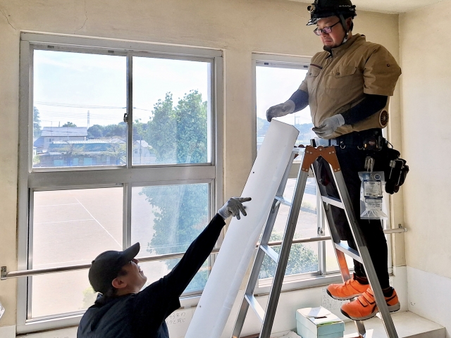 チームで進めるLED交換作業。未経験でもサポート体制は万全です。