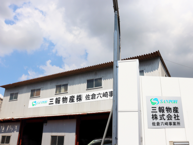 六崎事業所・事務所の外観。会社名の看板が目印です。