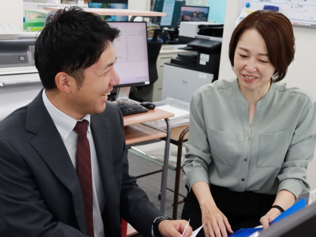社内では事務社員もサポートしてくれます。チームワークの良さは抜群です。