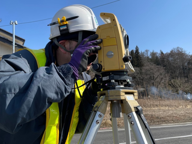 トータルステーションを使った測量風景。経験・資格は一切不問です!