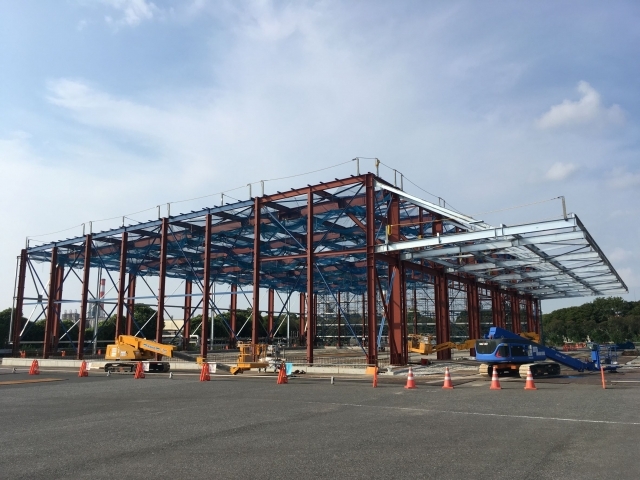私たちが描いた施工図をもとに、こんなに大きな鉄骨建築ができあがっていきます。