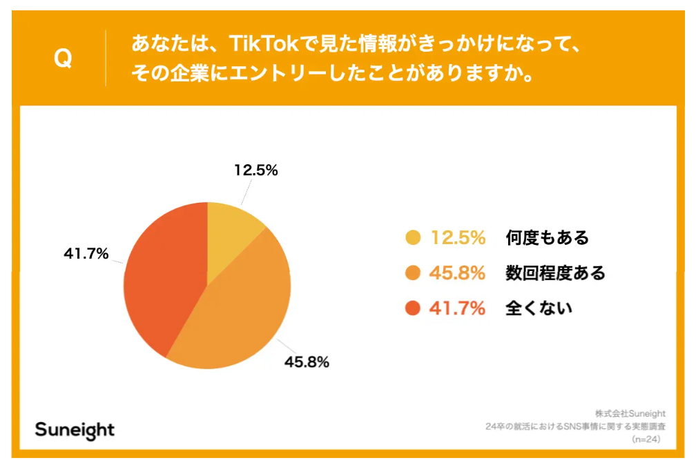 ・約6割が、「TikTokがきっかけで、その企業にエントリーしたことがある」と回答