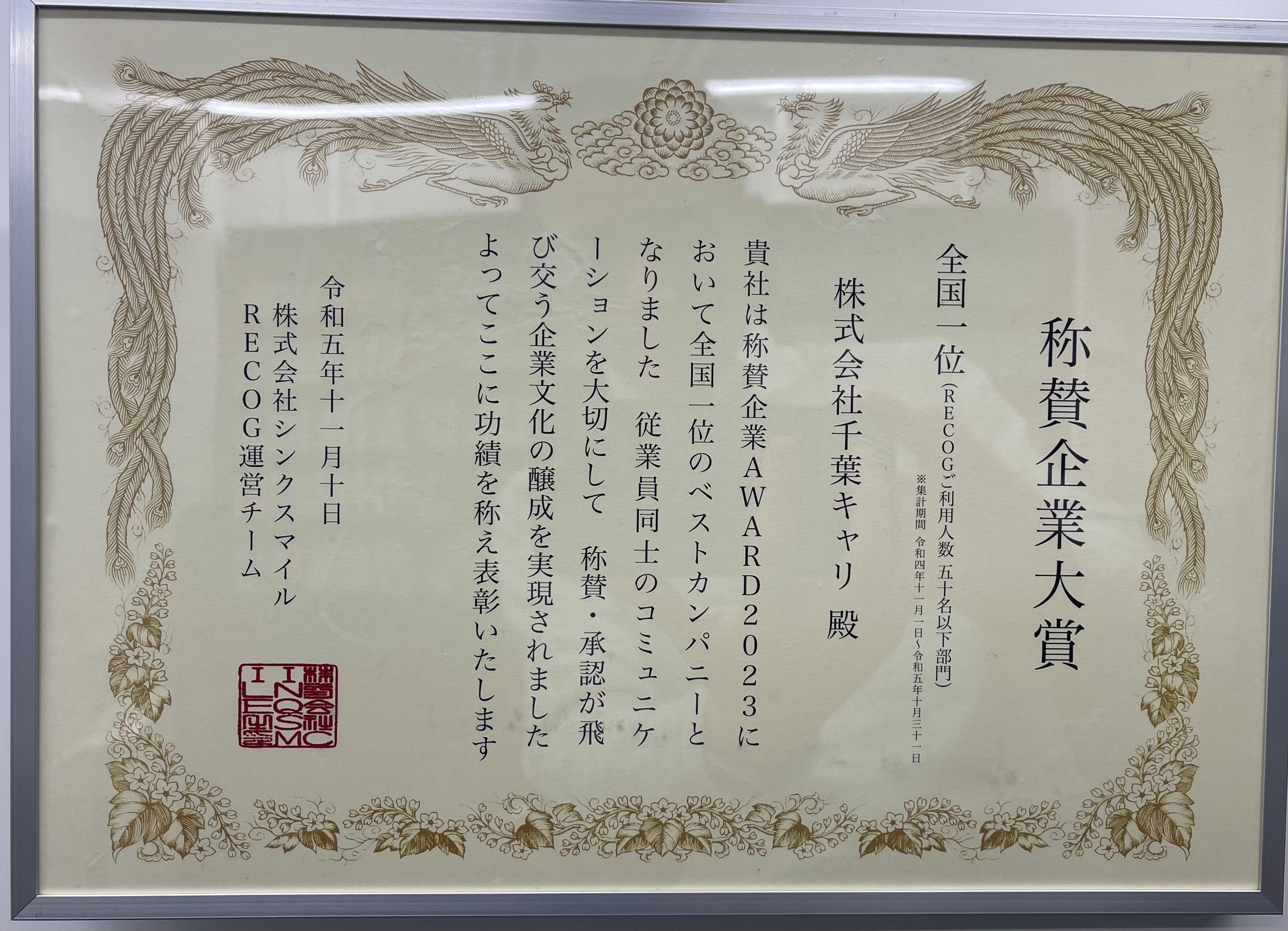 参考:RECOG称賛企業AWARD 2023(株式会社シンクスマイル・プレスリリース)